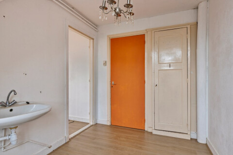 Je betreedt het pand via de voordeur en komt direct in een kleine hal waar je middels een vaste trap het pand binnen treedt.